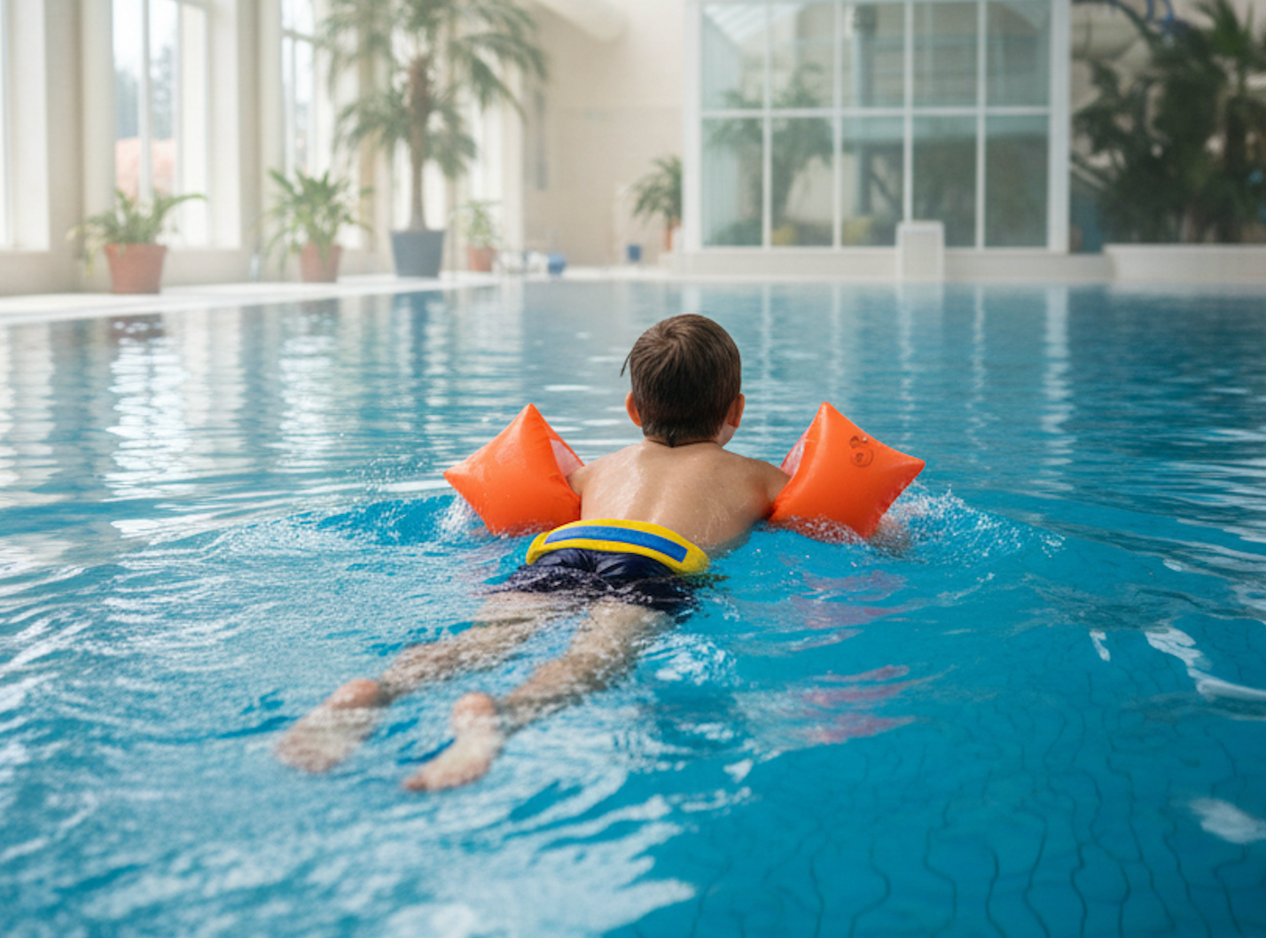 Giv dit barn den bedste start i vandet med sikre og behagelige hjælpemidler. Find et nøje udvalgt sortiment af badevinger og svømmebælter, der hjælper børn med at holde balancen, føle sig trygge – og have det sjovt i vandet.