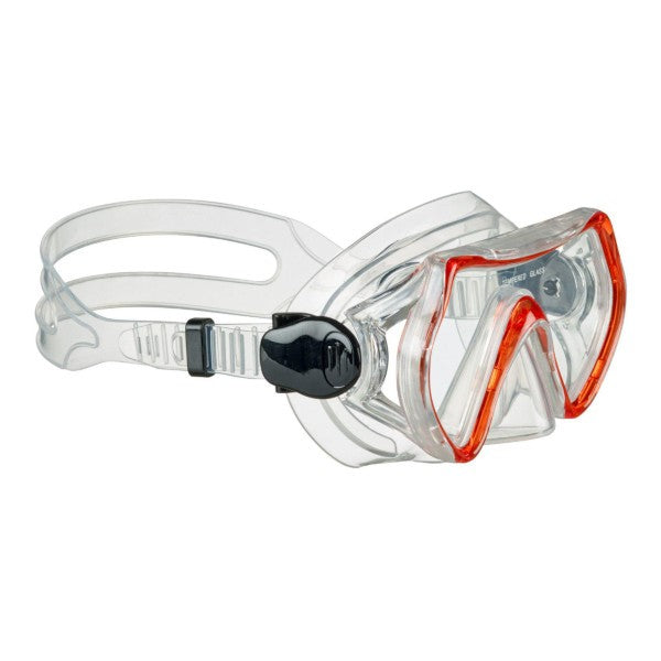 De hærdede glaslinser sikrer et stort synsfelt, så børn kan opleve alt det spændende, der foregår under vandet. Dette gør dykkermasken perfekt til undervandsopdagelser.