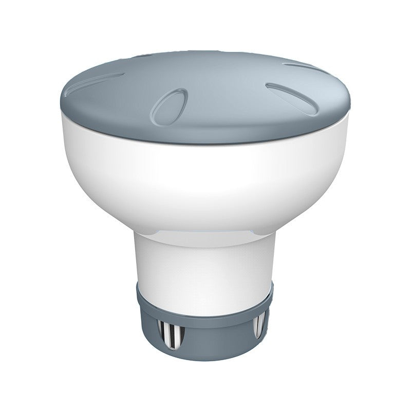 Denne klordispenser er ideel, hvis du bruger 20 g klortabletter, og du ikke ønsker, at bruge tabletterne direkte i poolskimmeren. Dispenseren flyder i poolen, mens den langsomt afgiver klor til vandet. Dispenseren fyldes med den påkrævede mængde langsomt opløselige klortabletter. Der justeres til det ønskede klorafgivelsesniveau ved at dreje på doseringselementet i bunden af dispenseren.