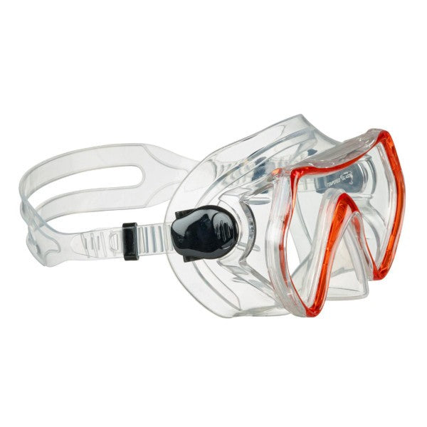 Den dobbelte nakkestrop gør det nemt at justere masken, så den passer perfekt til barnets hovedform. Sidespænderne gør tilpasningen enkel og hurtig, hvilket giver en stabil og sikker pasform, selv under længere tid i vandet.