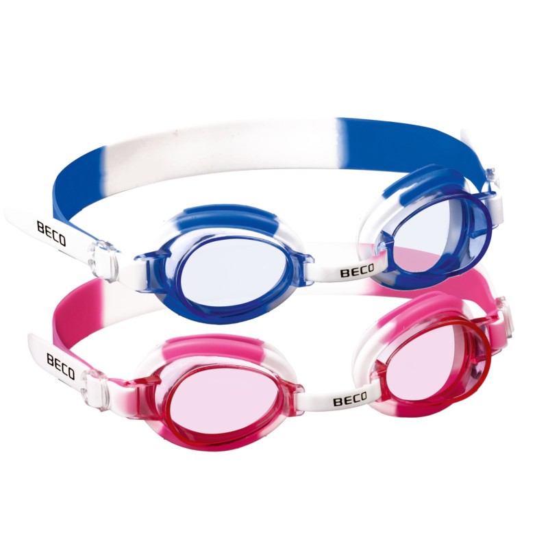 BECO Halifax svømmebriller til børn fra 8+ år. Behagelig svømmebrille i blød silikone. Findes i 2 farver - Pink/hvid til pigerne og blå/hvid til drengene.