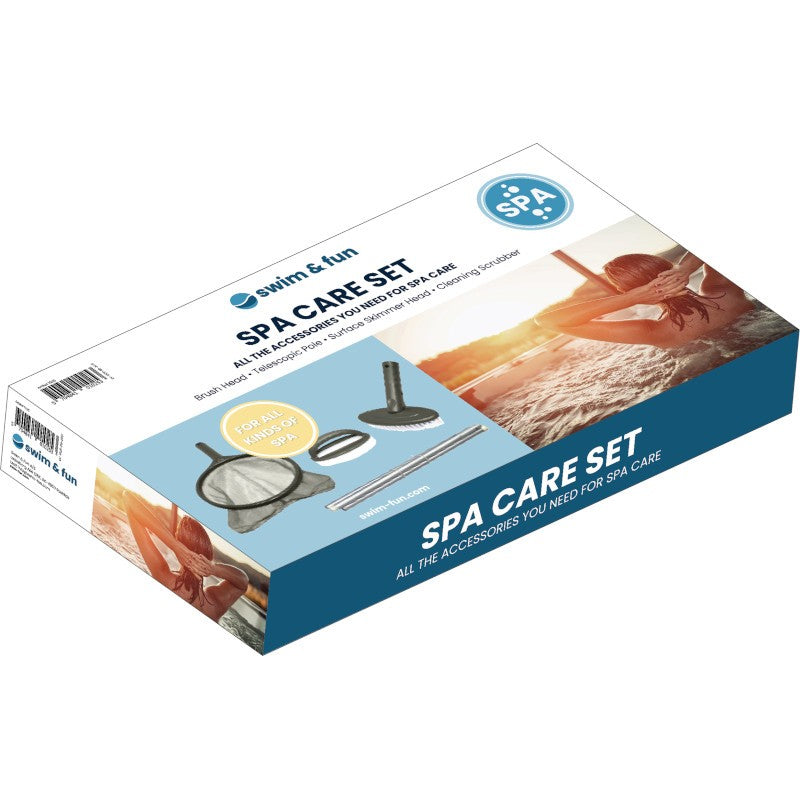 Praktisk sæt, der inkluderer alt rengøringsudstyr, der er nødvendigt for at holde spabade rene og indbydende (undtagen vandplejeprodukter). Sættet inkluderer børstehoved, teleskopstang, overfladeskimmerhoved og rengøringssvamp.