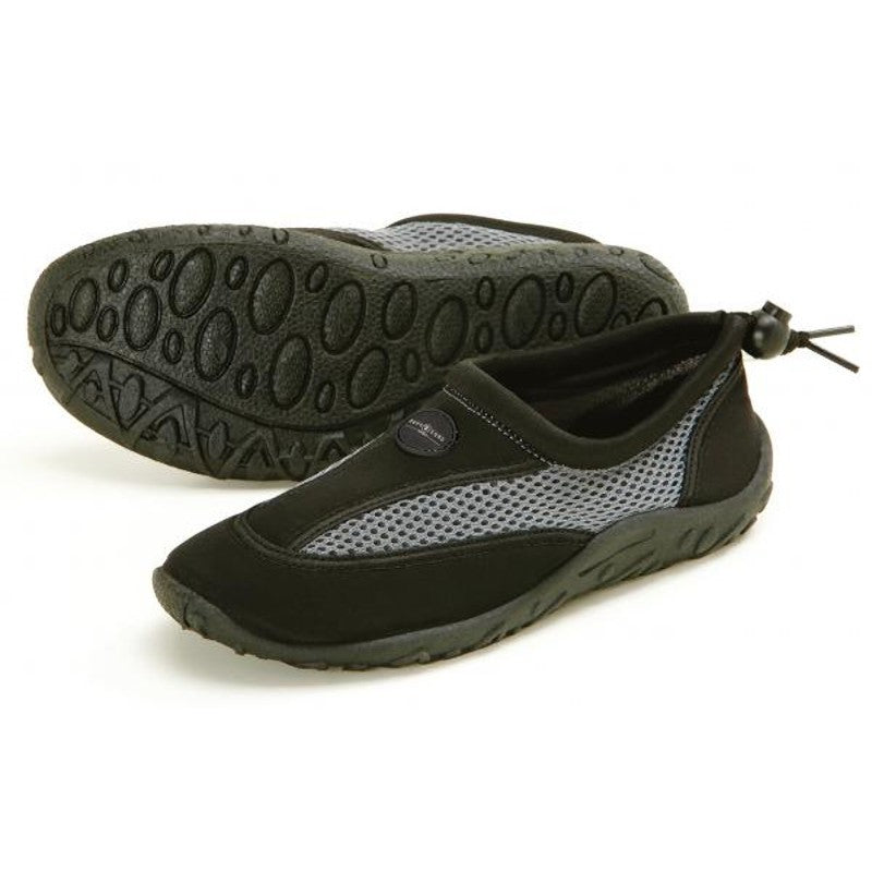 Lette, praktiske og behagelige badesko der beskytter dit barns fødder og hjælper dem med at stå fast på glatte overflader. Kommer i farvekombinationerne grøn/blå og sort/grå. De findes i størrelser fra 28 - 35.