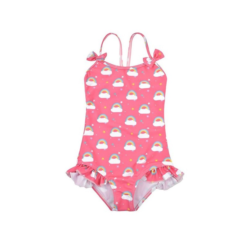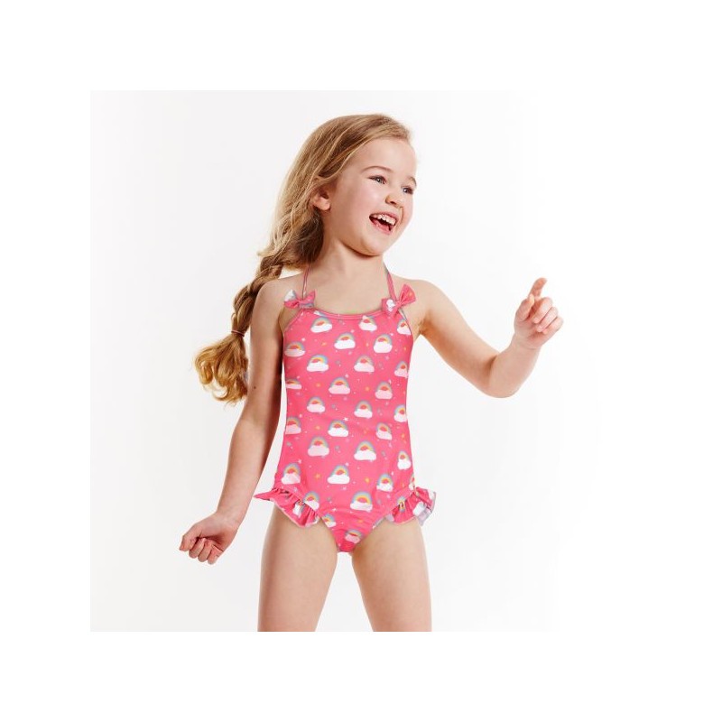 Utroligt sød badedragt til piger, med det fineste regnbuemønster.